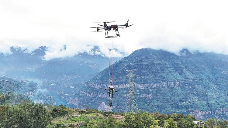 功课东谈主员操控无东谈主机载着探测机器东谈主飞抵检测点。