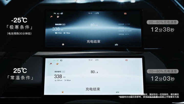 岚图追光L径直用“真实力”攻克了该用车痛点,通过一场极寒环境下的实测给出了最硬核的恢复。在模拟东北冬季风景的冷冻仓中,将追光L置于零下25℃的环境里静置8小时,车身结满冰层,依然不错胜利起初。更要津的是,在如斯极寒的环境下,其SOC 20%-80%充电时候仅需12分38秒,与常温条目下充电速率进出仅约30秒,澈底冲破新动力车“冬天充电比等雪化还慢”的魔咒。