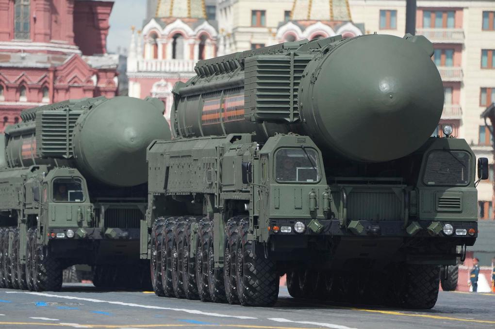 这是5月9日在俄罗斯皆门莫斯科举行的记念苏联伟大卫邦交往告捷80周年考订式上拍摄的洲际弹谈导弹。新华社记者赖向东摄